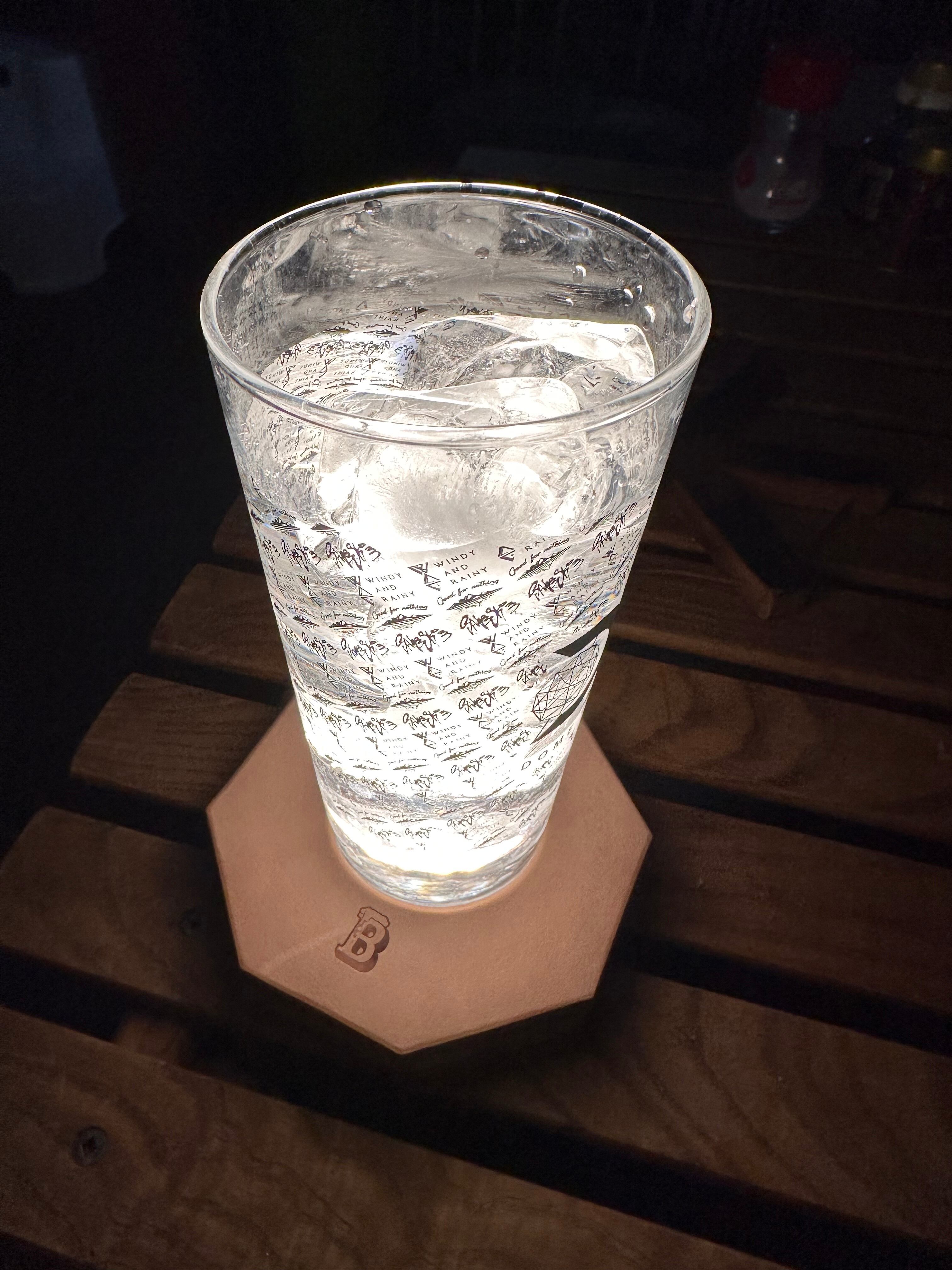 このコースターは普段はキャンプでグラスをオシャレにライティングし、災害時には安心安全に使用が出来るペットボトルランタンとして暗闇を照らしてくれます。