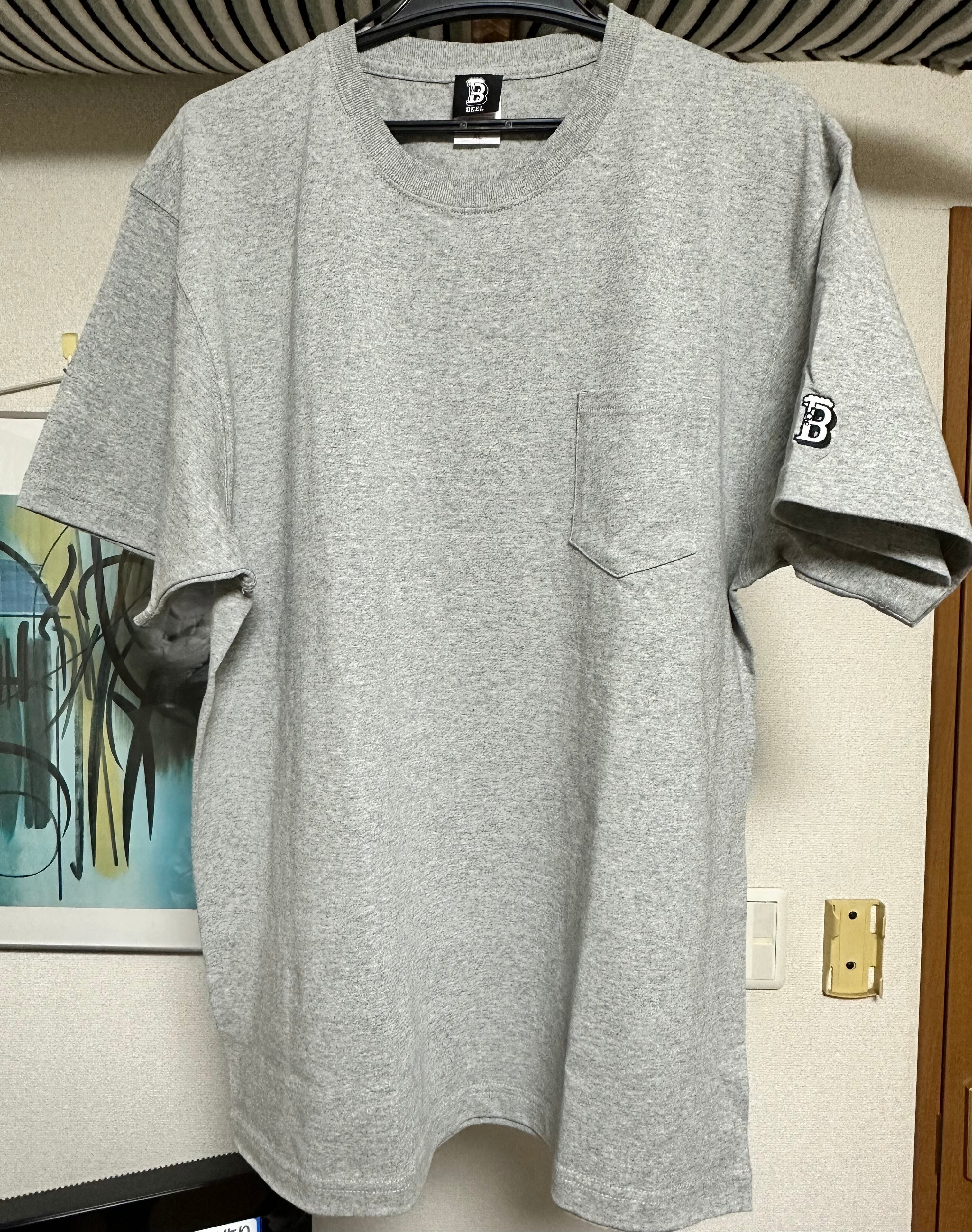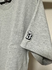 左袖にワンポイントのBの刺繍が入ったポケットTシャツ。
