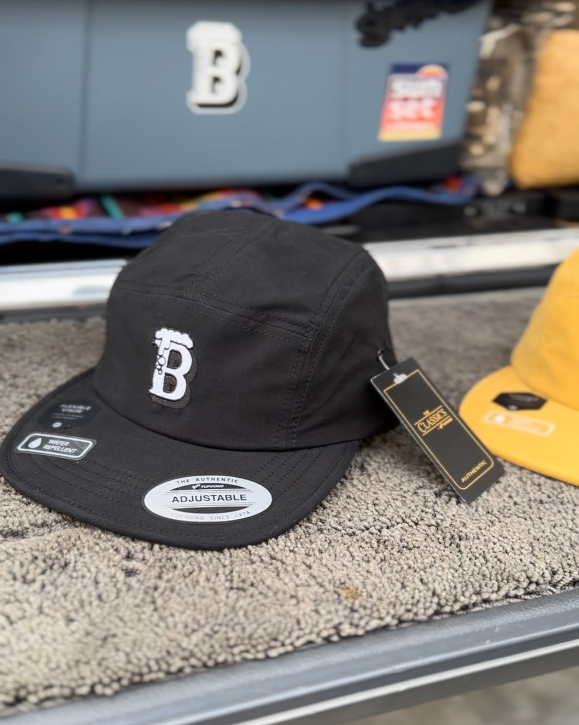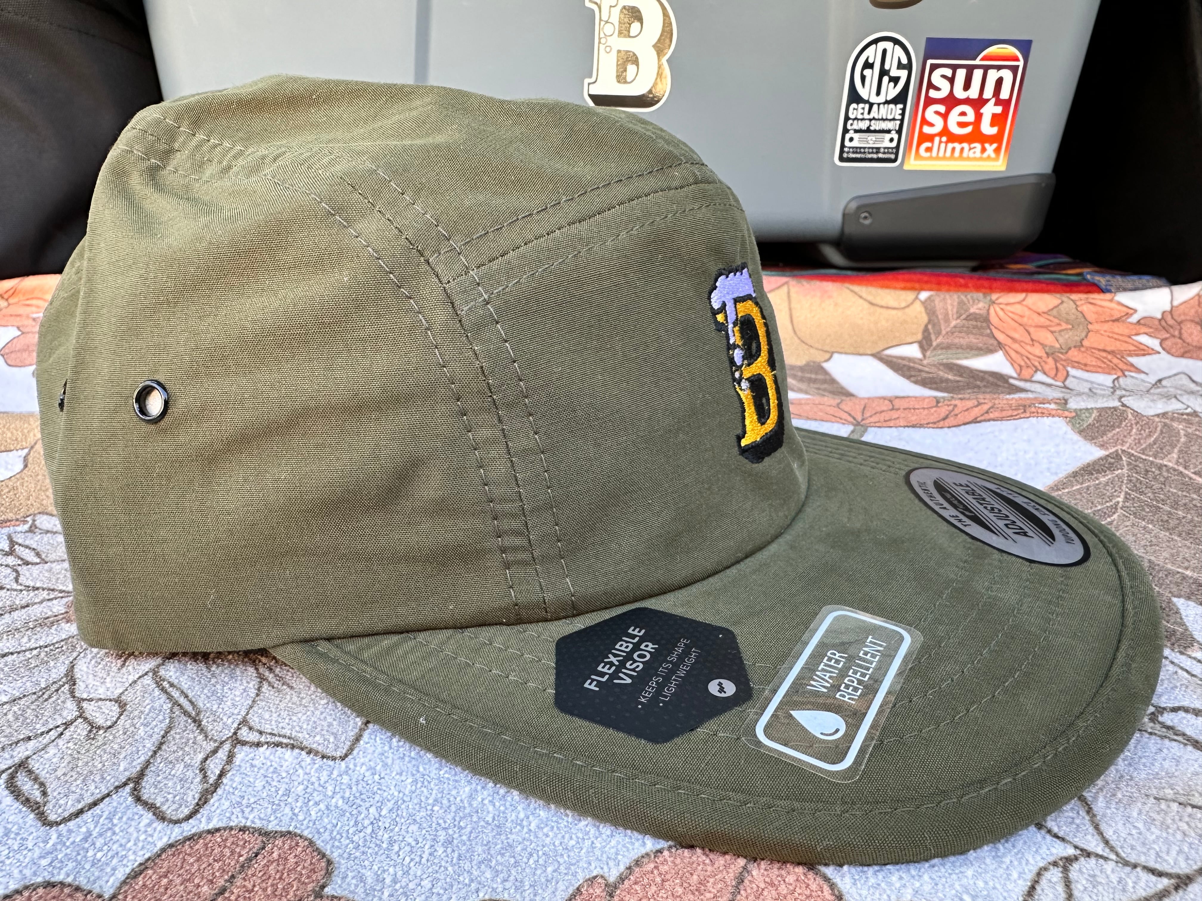WATER RIPELLENT加工されたキャンプキャップ。
